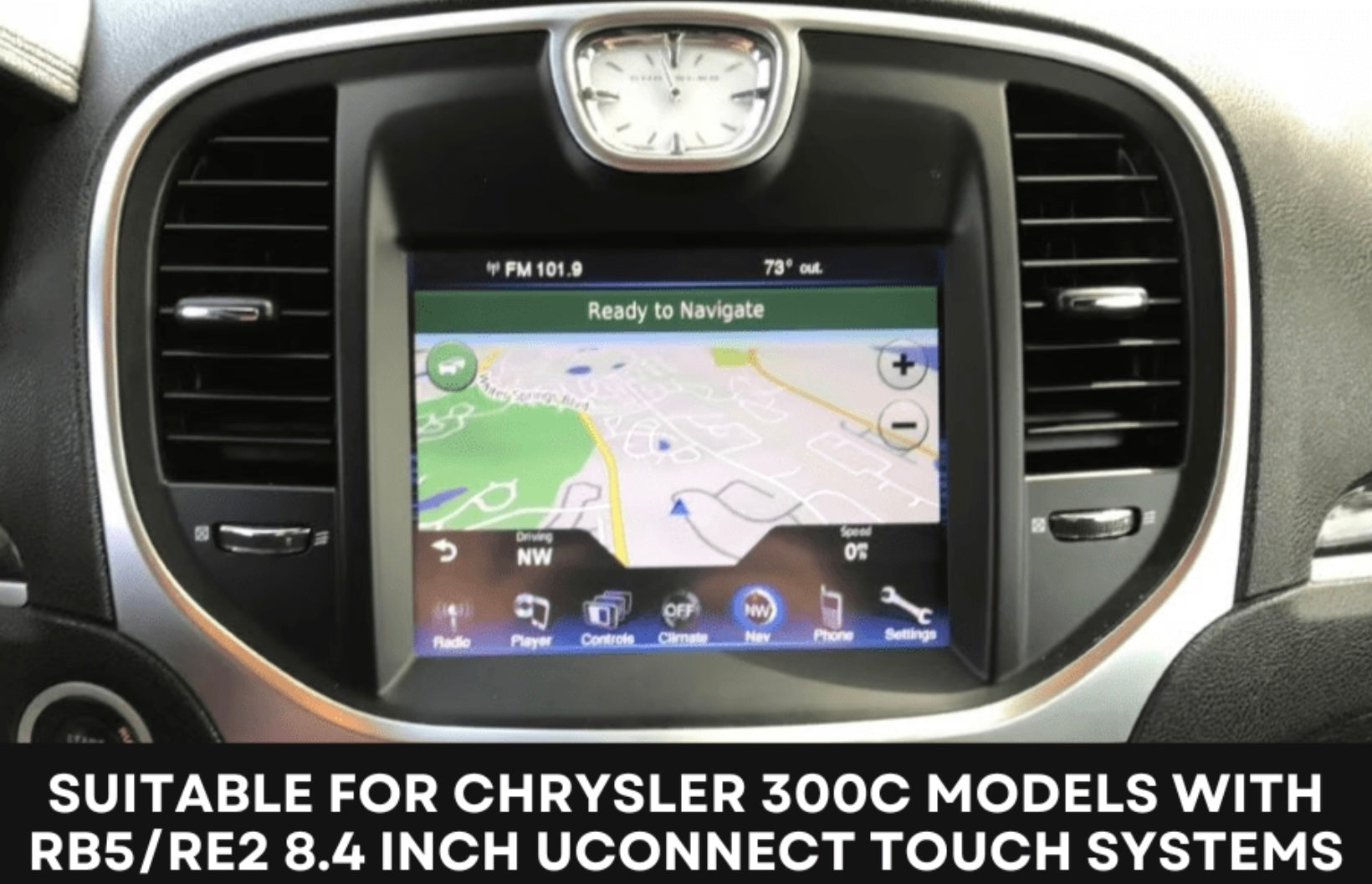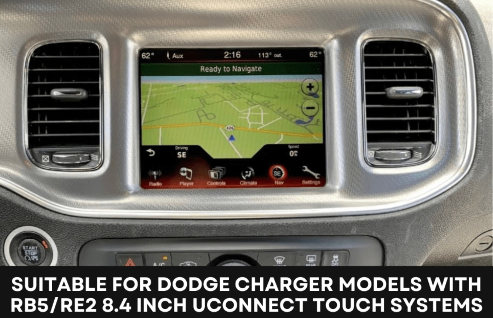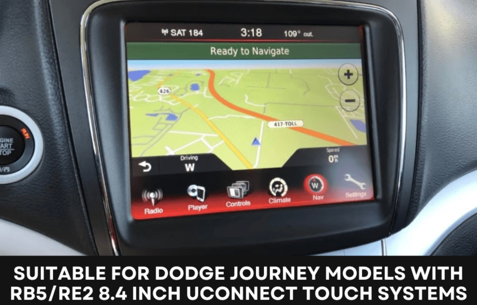 - Navigation - Only compatible for cars with Uconnect 5 inch or 8.4/ RB5 and 8.4/ RE2 system monitors with 22 pin connector