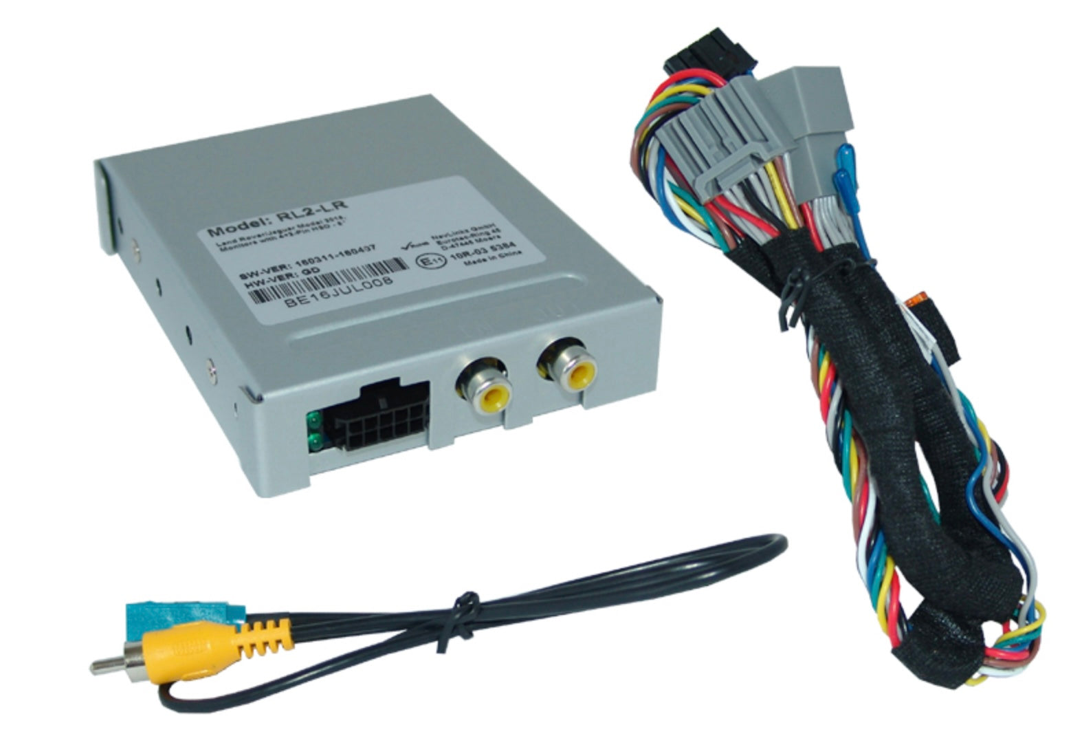 This interface transforms composite video signal into the RGB video necessary for the reverse camera connection. Reverse image is activated via the CANbus