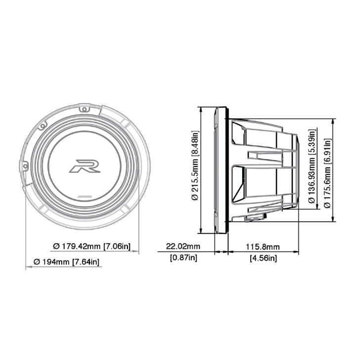 - 8” R2-Series DVC Subwoofer with Cosmetic Trim Ring