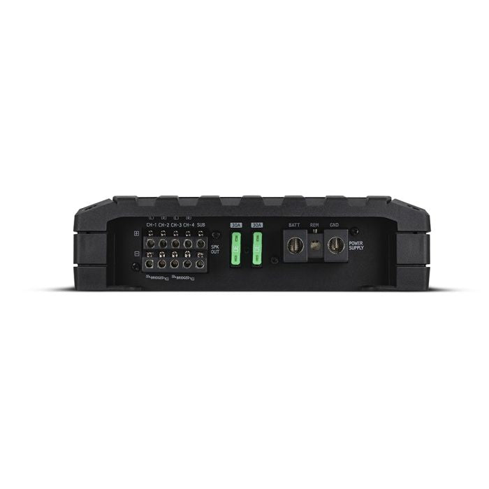- Per Channel into 4 Ohms, 14.4V (≤1%THD+N): 4 x 40W + 1 x 200W
