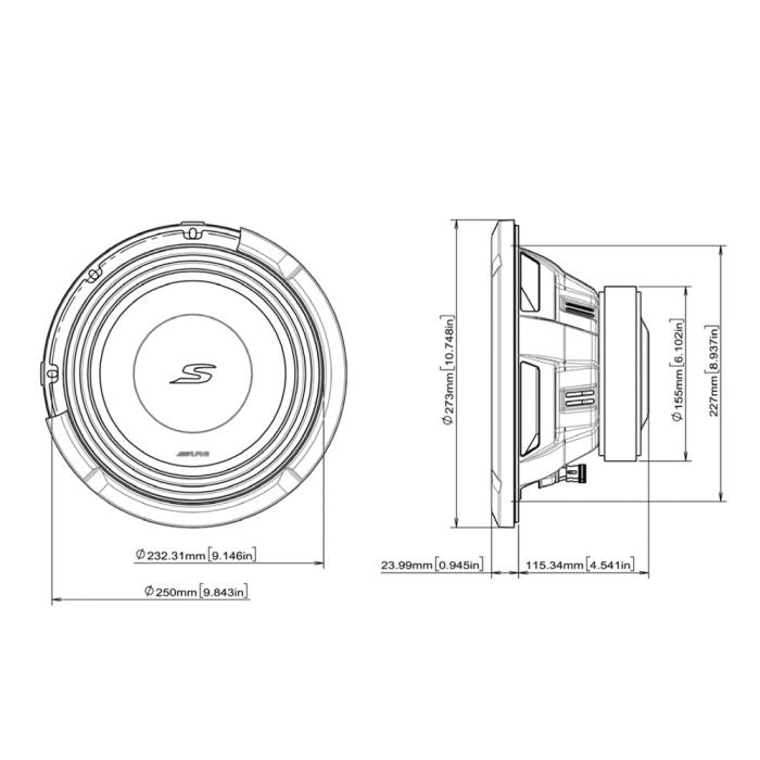Alpine S2-W10D4 - 10" S-Series Dual 4 Ohm Car Subwoofer 1800W
