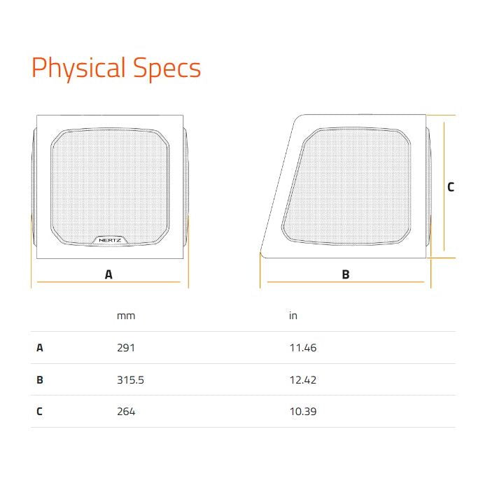 - Slanted lower panel to ease the enclosure installation next to the seats