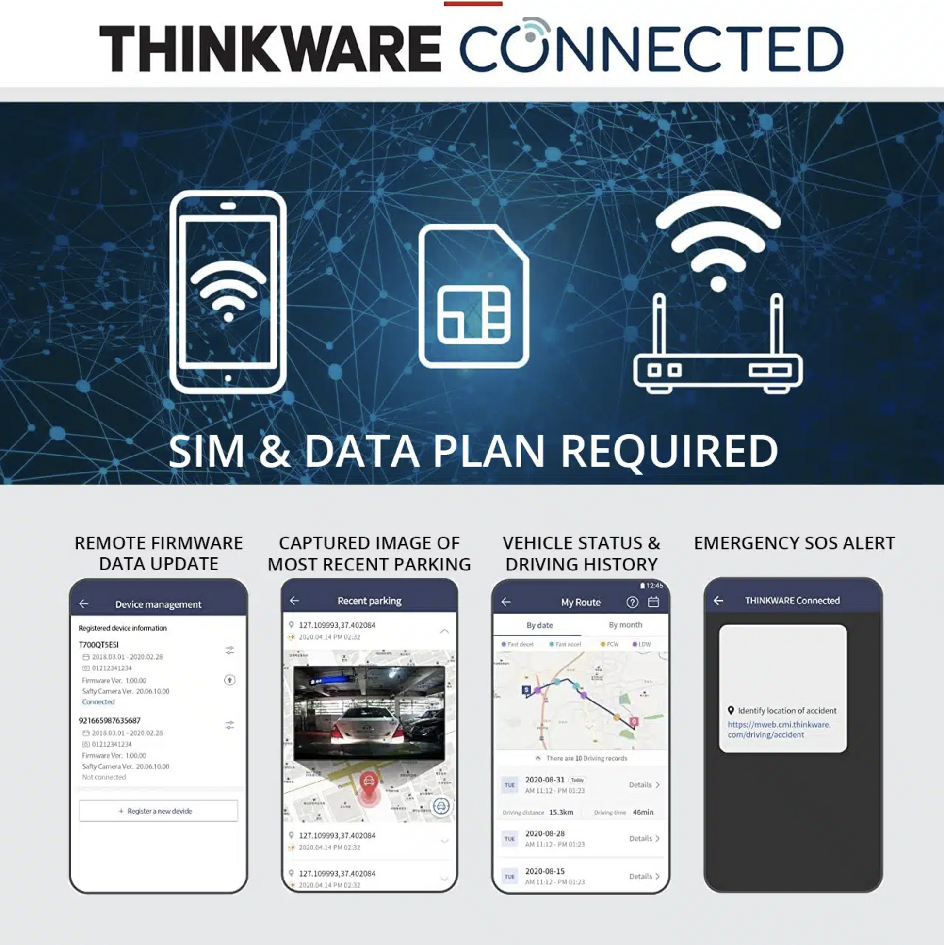 Wi-fi and cloud connectivity - Live view, Geo-Fencing, locate vehicle, driving and parking impact notification - the cloud combines state-of-the-art dashcam technology with a suite of features that take the user experience to new levels. Use Wi-Fi to view, download, delete or share footage.